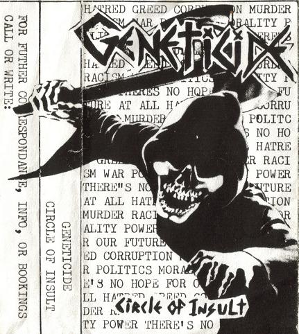 Geneticide "Circle Of Insult" demo recorded in 1988. Another blazing hardcore/metal/crossover band that never got anywhere, but had definite potential. 6 songs from this were post-humously released on a very limited 7" sometime in the late 90's.