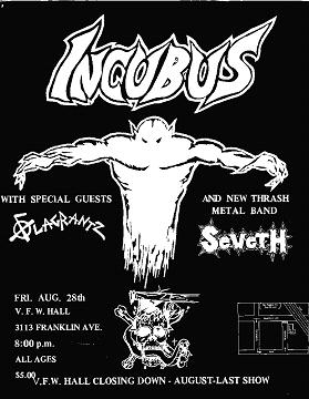 Here is a live Incubus recording of their August 28, 1987 show at the VFW Hall show that Scot Latour sent me.